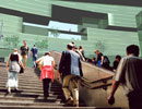 in den Bahnhof in eine wellenartige Bewegung und verweist auf den dahinterliegenden